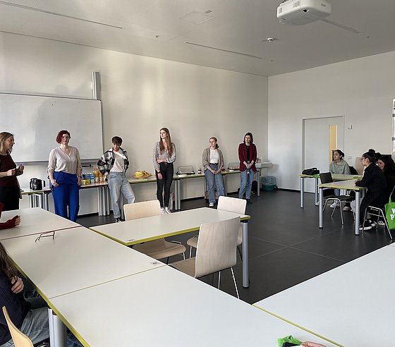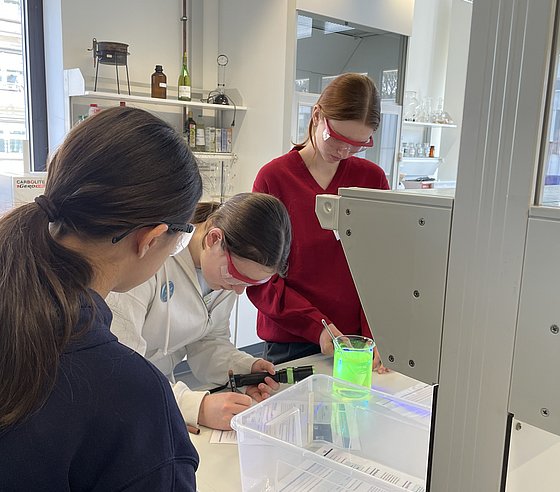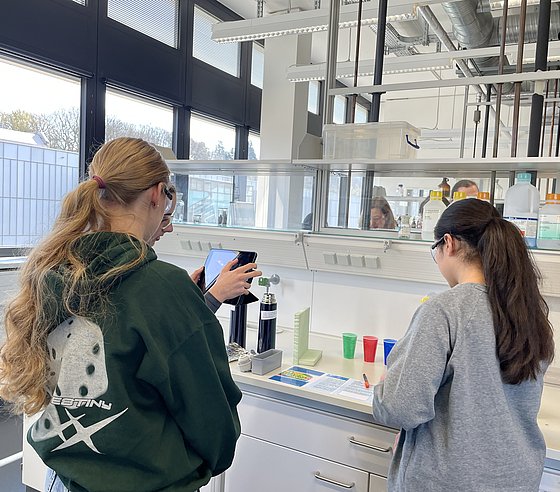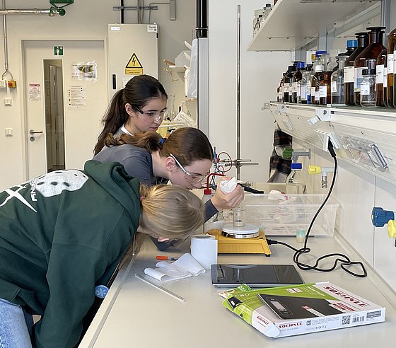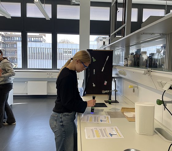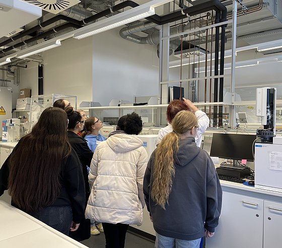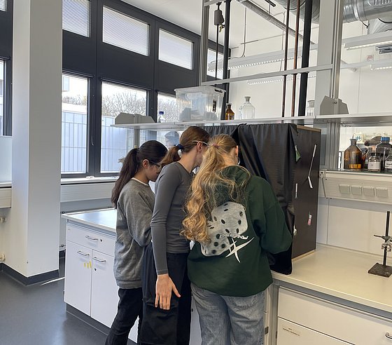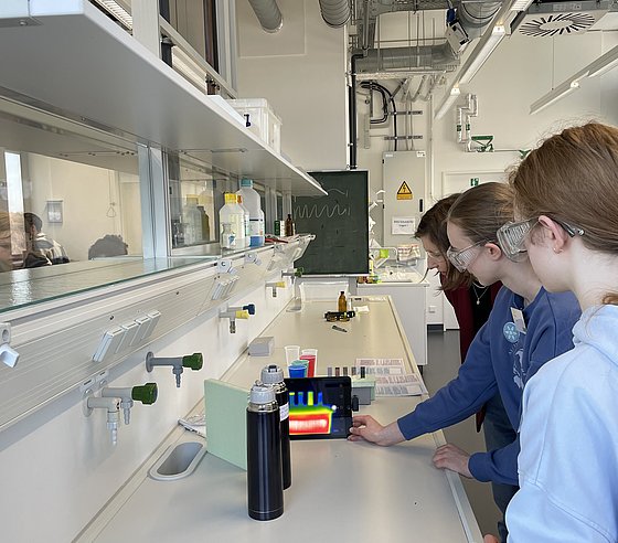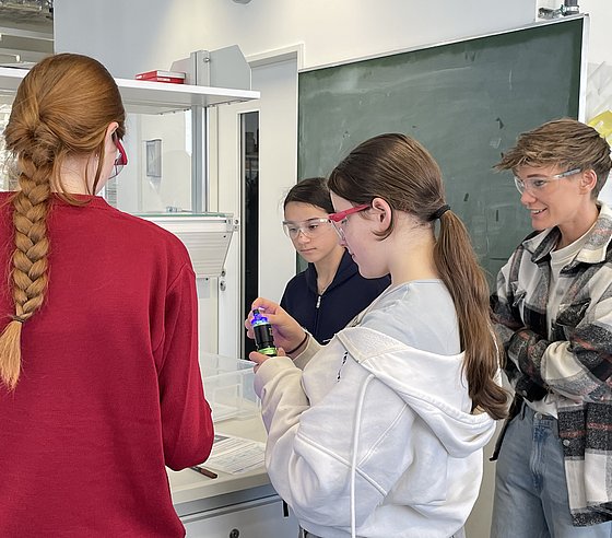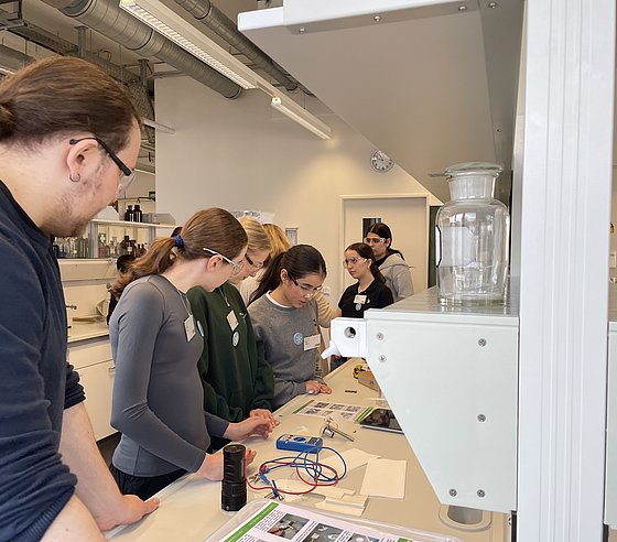 Rund 20 Schülerinnen konnten einen einen Einblick in das facettenreiche Gebiet der Chemie bzw. der Chemie-Berufe werfen. Dabei warfen einen Blick in die Labore, führten eigene Experimente durch und lernten die Grundlagen über Stoffe, Energie und Licht. Besonders spannend: der Austausch mit Studierenden, wiss. Mitarbeiteden und Professorinnen der Fachgruppe, die aus ihrem (Studien-)Alltag berichteten.
