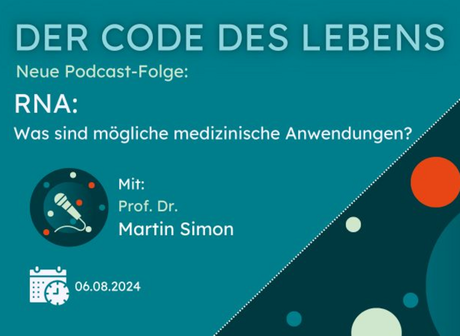 Auch in der August-Folge des Podcast „Der Code des Lebens” des GHGA füllt Prof. Dr. Martin Simon den Begriff „RNA“ mit Leben und gibt Einblicke in die spannende Welt der RNA-Forschung und der medizinischen Anwendung: